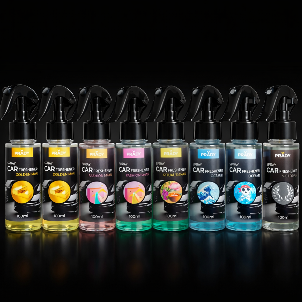 Le Désodorisant pour voiture en spray de Prady – 100 ml est conçu pour neutraliser les mauvaises odeurs et parfumer l'intérieur de votre véhicule instantanément, en une seule pulvérisation. Son format en spray permet une application rapide, pratique et sans résidu